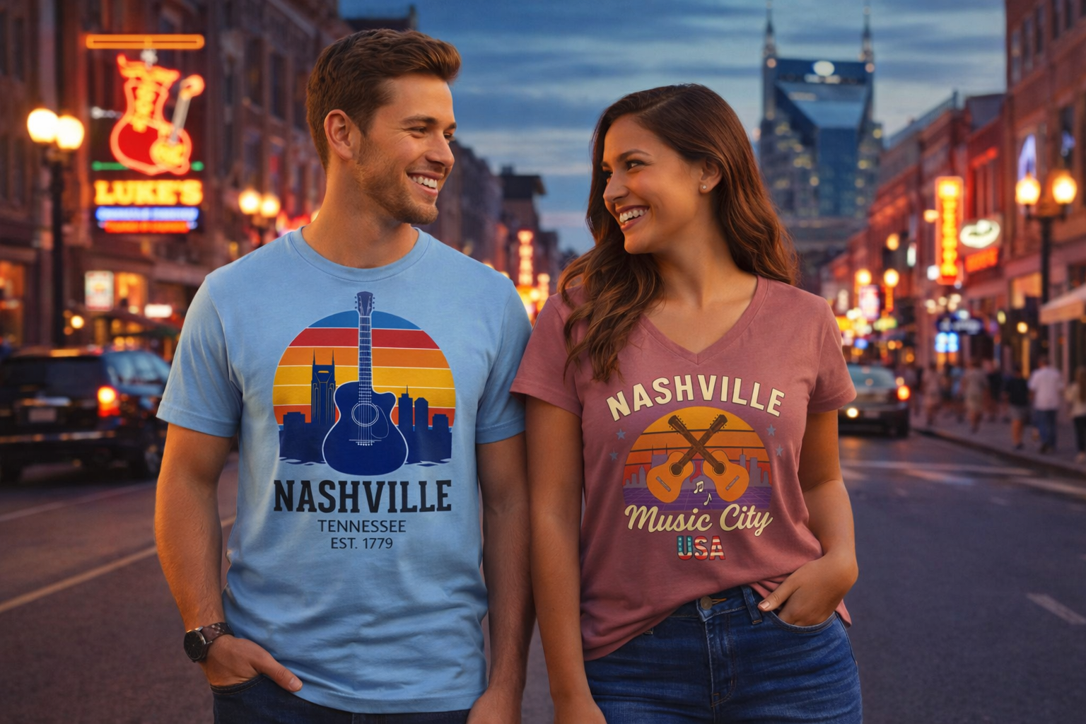 Nashville Skyline Guitar T-Shirt – Retro Tee for Men & Women